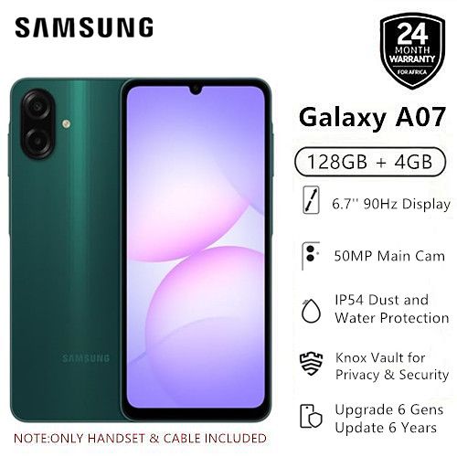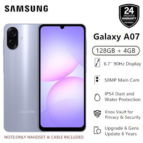 [Limited Offer] New Arrival Samsung Galaxy A07 128GB+4GB 6.7" 90Hz 50MP Dual Camera MTK Helio G99 5000mAh 25W Type-C Charge Android 15 Smart Phones IP54 Waterproof Side Fingerprint phone