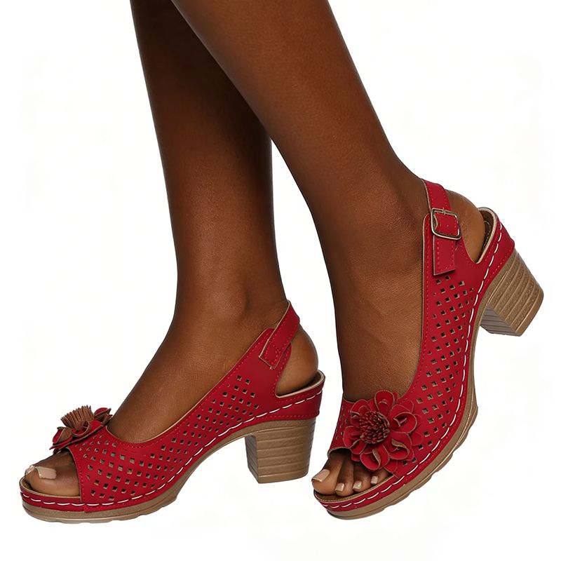 Fashion Flowers High Heels Shoes Sandals Women Back Strap Hollow Out Summer Sandles Woman Plus Size Thick Heeled Sandalias Mujer Open-Toe Ankle Strap Platform High Heels